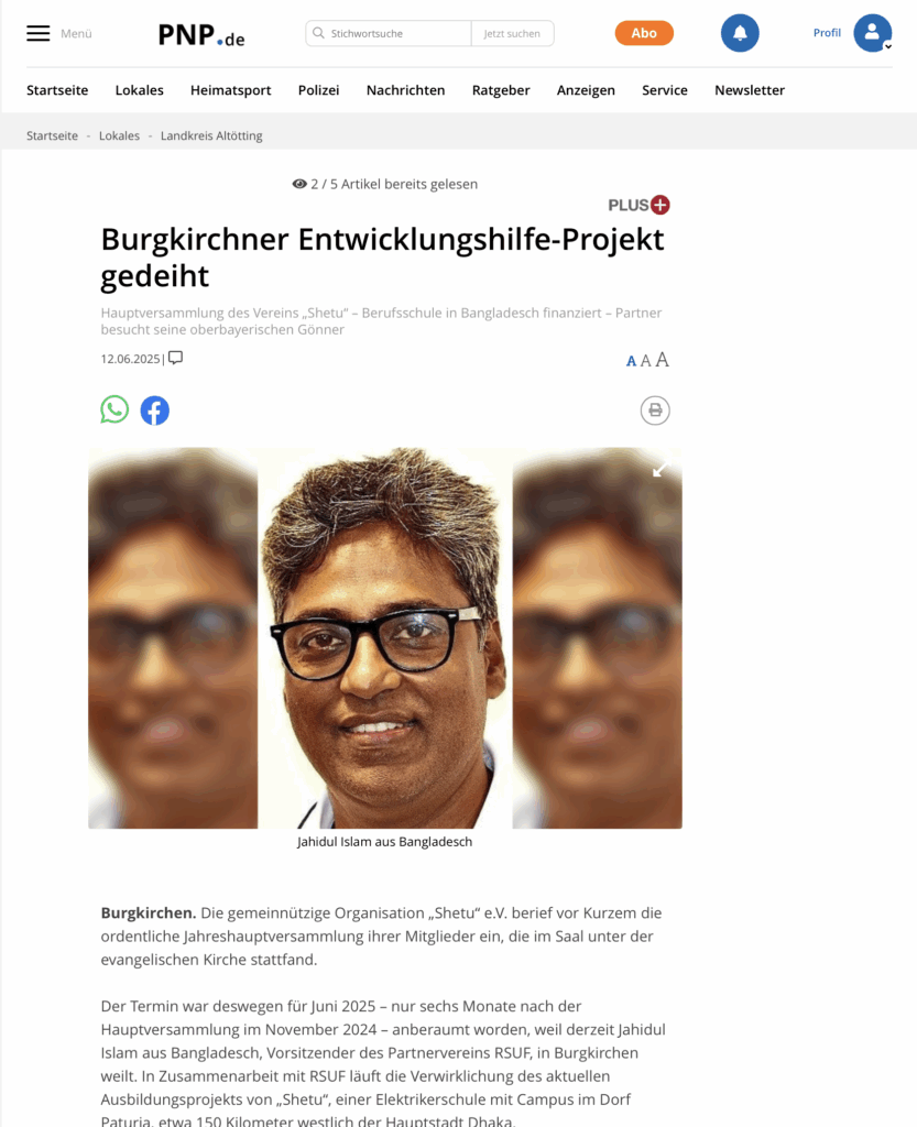 „Shetu“, einer der jüngeren Burgkirchner Vereine, der ein Schulprojekt in Bangladesch realisiert, hat satzungsgemäß seine Jahreshauptversammlung abgehalten. Mehr ansehen